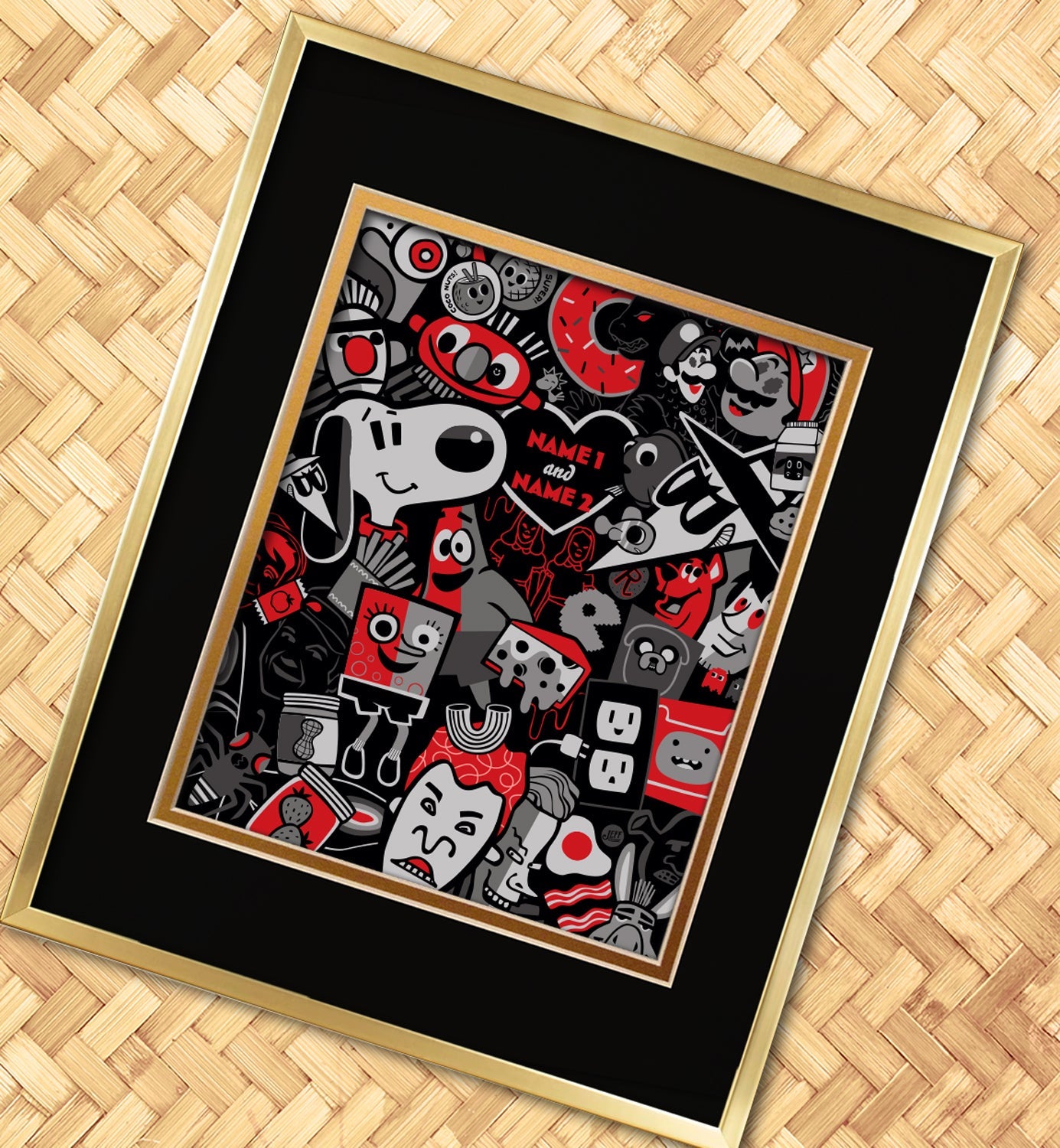 Jeff Granito’s Personalized ‘BFF' (Black and White and Red All Over) 8X10 Matted Print and 11X14 Gold Frame Set
