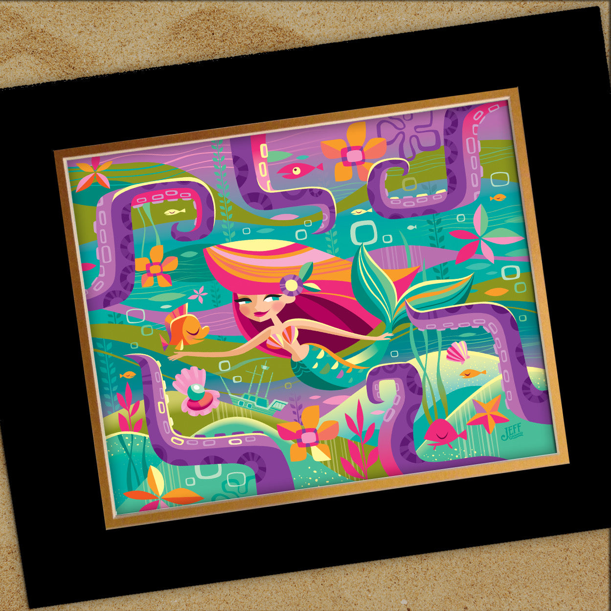 Jeff Granito Designs his art with vibrant saturated colors and a tropical tiki twist.