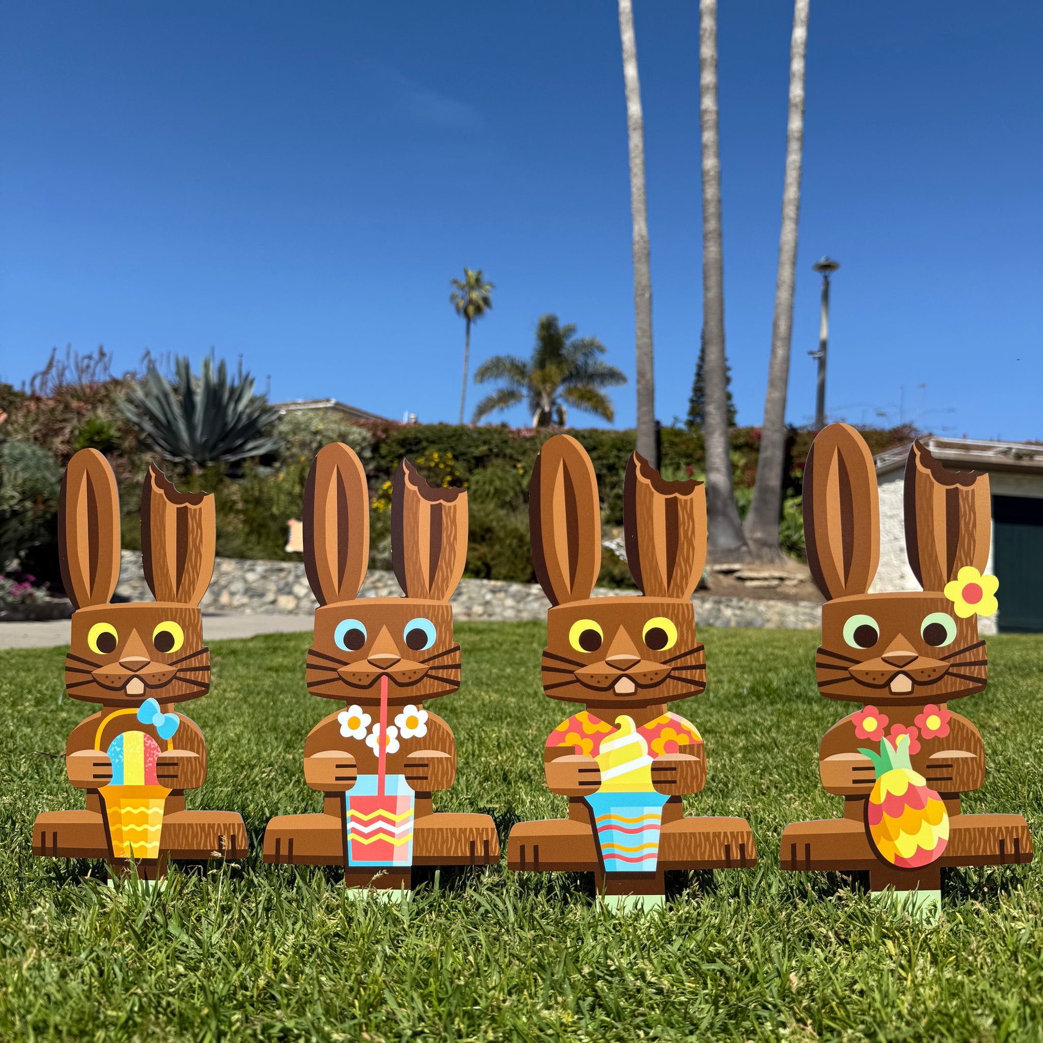 Jeff Granito's 'Tropical Bunny' Metal Yard Stakes Set of FOUR (4) - Pre-Order